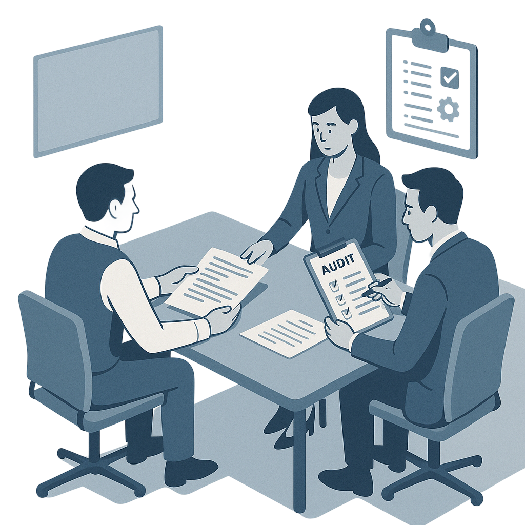 Süsteemi- ja protsessiauditid on vajalikud, et hinnata Teie ettevõtte tööprotsesside vastavust ja tulemuslikkust. Aitame tuvastada probleemsed valdkonnad ning pakume lahendusi nende parandamiseks.